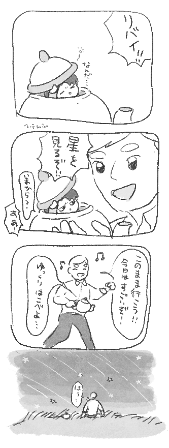 44 193 だんだん溶けていくゴロリちゃんと折り紙のお魚釣りをしてお魚がとれたぱぴり🎣✨のらくがき 23/05/30 01:37