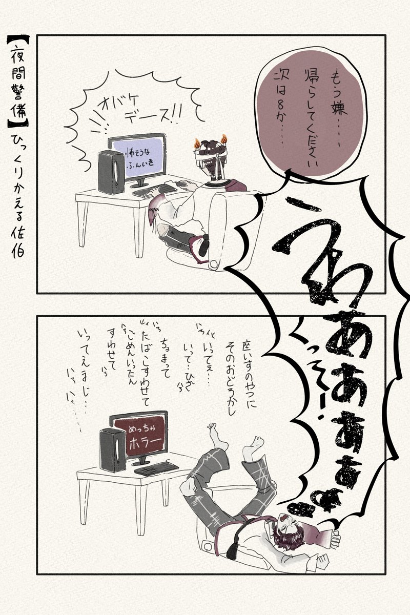 夜間警備の叫びまくる佐伯とてもよかった ひっくり返ってなお面白かった #サイキペイント