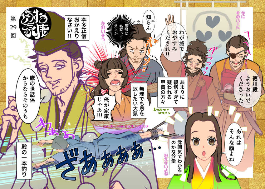 112 320 第15回、金ヶ崎がなんやかやで終わり藤吉郎劇場に白兎耳ガブーに瀬名とラブラブ美少年虎松ともりだくさんでした! #どうする絵 #どうする家康 23/04/23 22:14
