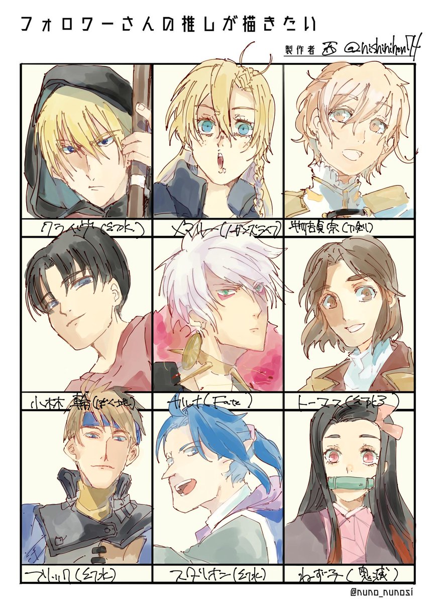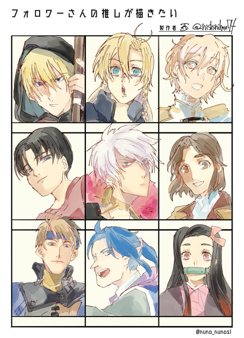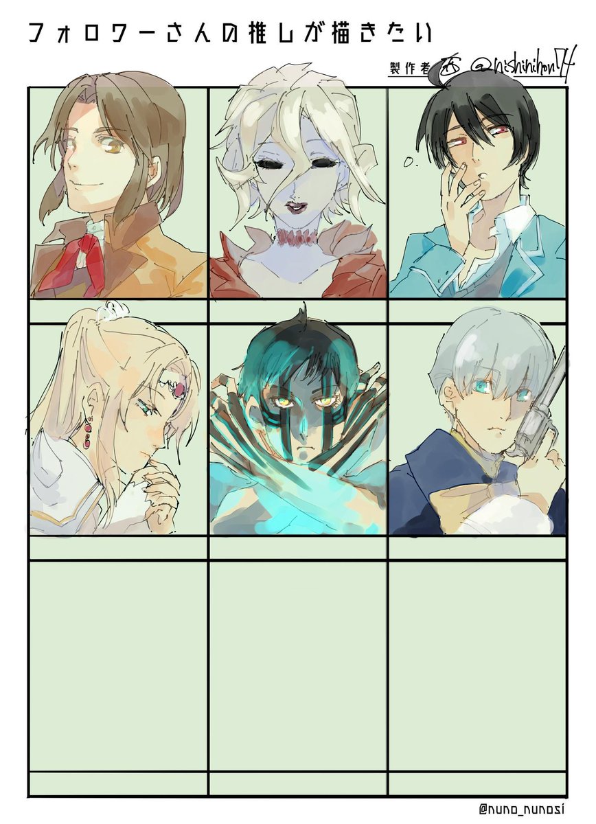 #フォロワーさんの推しが描きたい まずは第一波!描いたことのないキャラクターってとっても難しい…!ありがとうございましたッ! もう6枠は今塗ってるところなので近いうちに上げたいヽ(^o^)丿