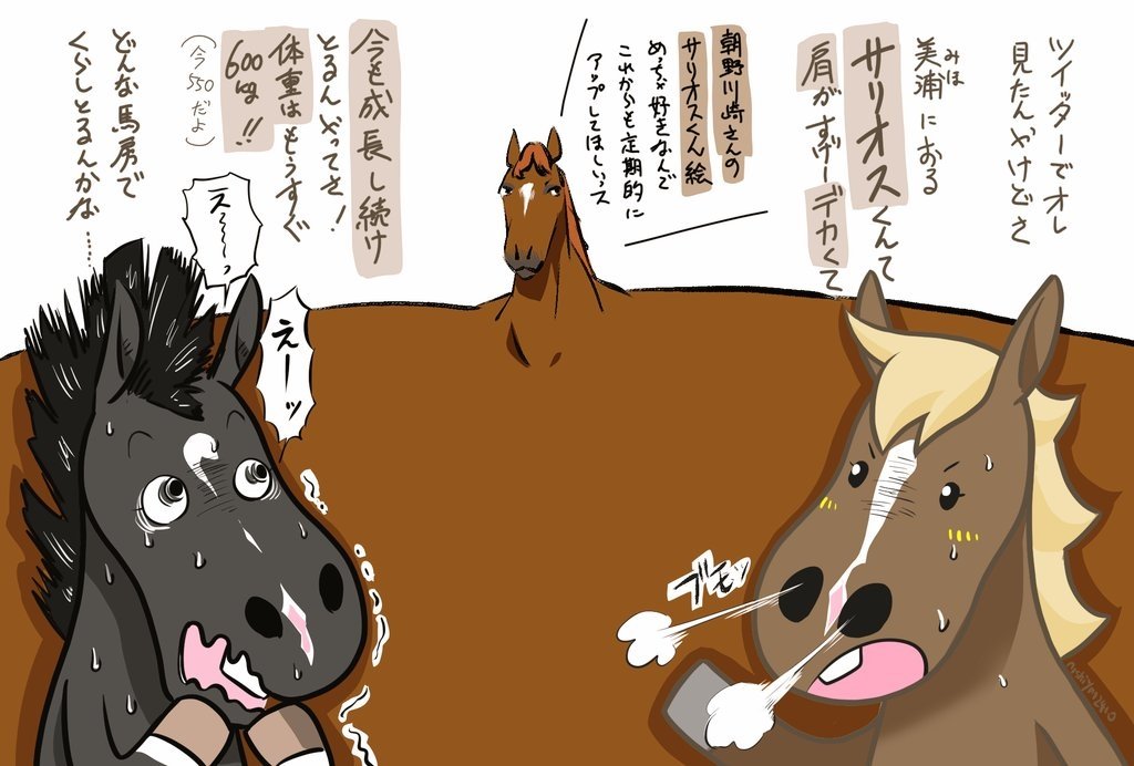 肩幅参考(去年の絵だから1歳若い) サリオスセンパイ600超えたらしいですね。いつまでも元気でいてほしいッス