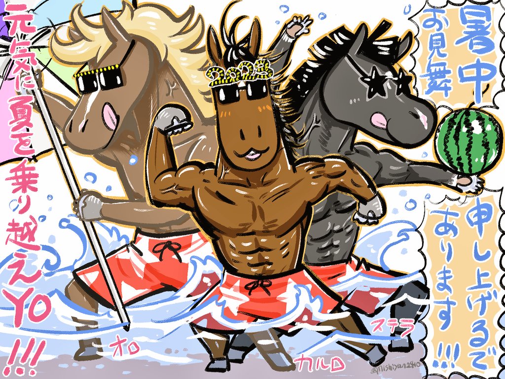 胸騒ぎの~ウマ~ケツ~♪ヴェヴェヴェ~ヴェヴェヴェ~♪ 暑中お見舞い申し上げます✌️🐴✌️🌊