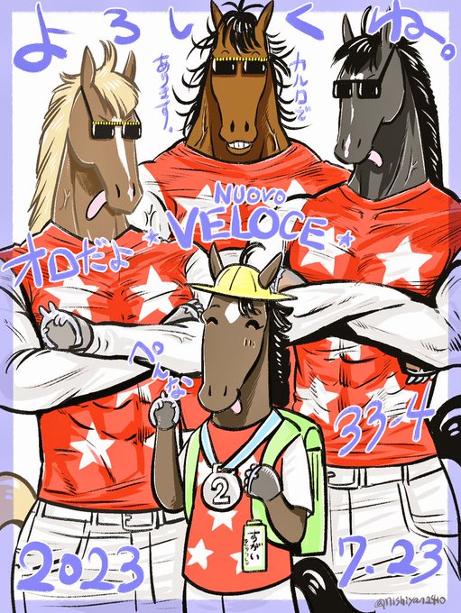 22 94 肩幅参考(去年の絵だから1歳若い) サリオスセンパイ600超えたらしいですね。いつまでも元気でいてほしいッス 23/07/26 03:11