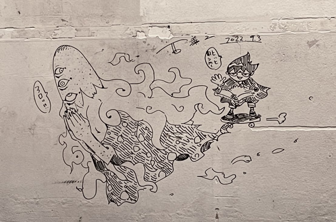 79 630 三年振りに『ばりきや』行って焼き肉食べて壁にまた描き足させてもらた✒︎ニンニクハラミ美味しかった…♡ 22/09/08 19:19