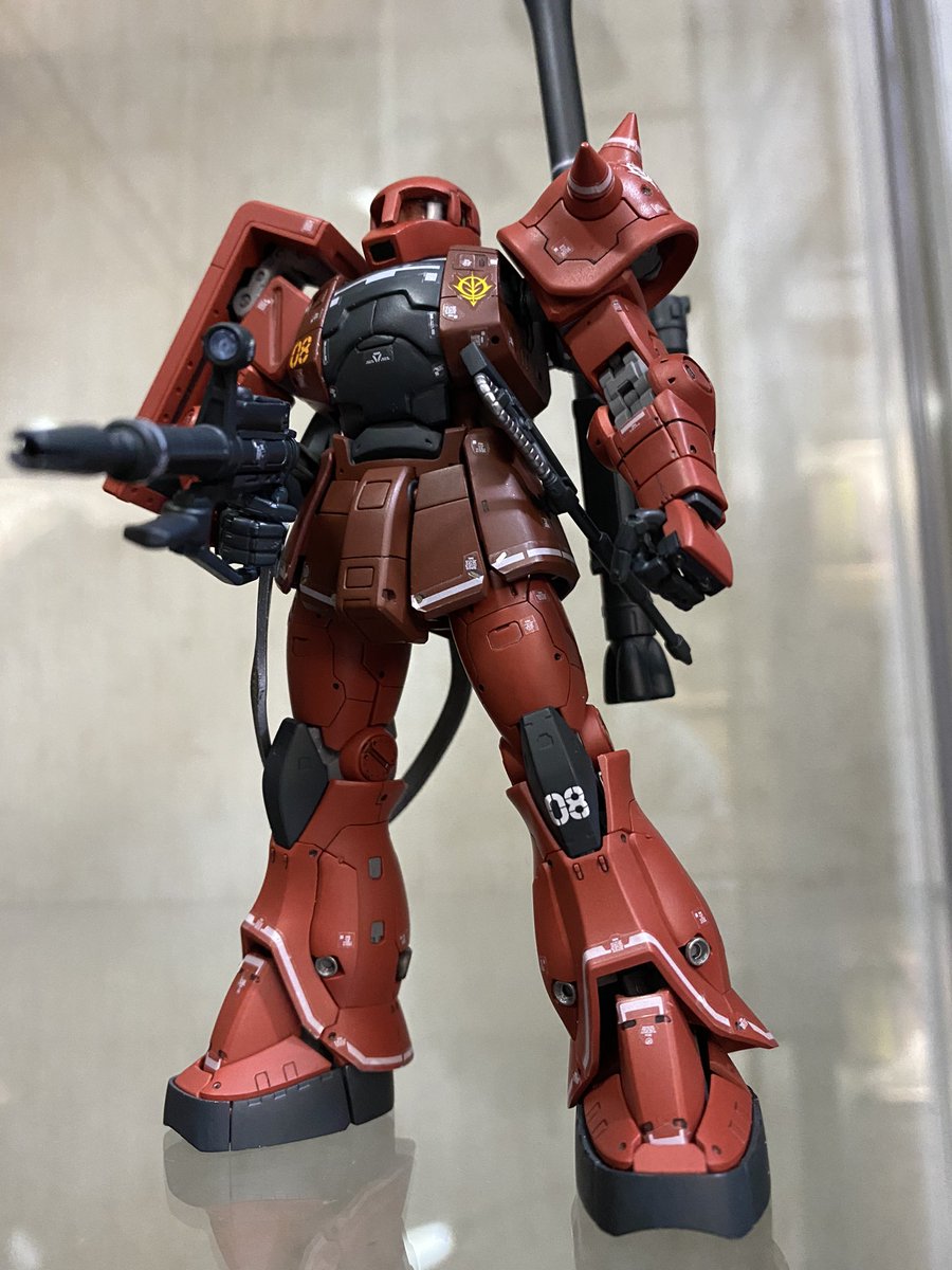 ガンプラ再開して早1年2ヶ月。やっとディスプレイ棚1段埋まりましたよ。テーマ「ジオン脅威のメカニズム」。一年戦争での歴代エース機をズラリ。シャア機が無いのはシャア専用棚を作るから♪最後衛の06R×3機はヤバいっすね(^^) #ガンプラ #ガンプラ好きと繋がりたい #ジオン脅威のメカニズム #HGUC