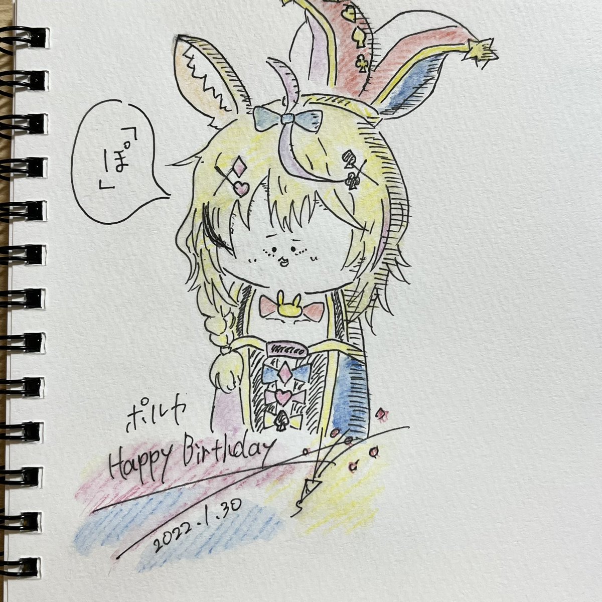 3 17 ポルカおめでとう ♠️♣️♥️♦️ 載せ忘れるところだった😩 #尾丸ポルカ生誕祭 #絵まる 22/01/30 22:16