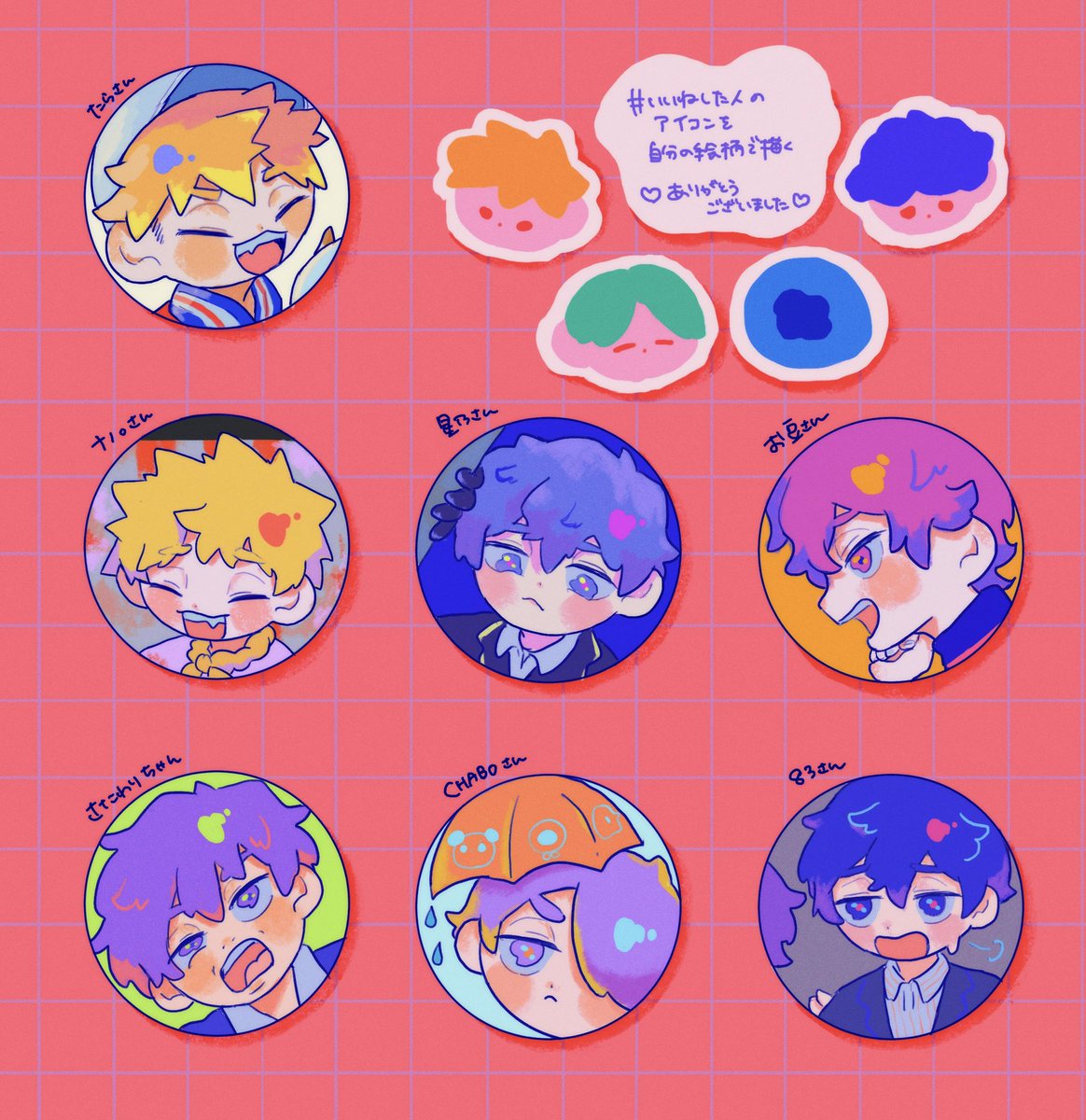 🌷いいねした人のアイコンを自分の絵柄で描く 大変遅くなってしまって申し訳ないです‼️‼️めちゃくちゃ楽しかったです‼️(いいねして下さった時のアイコンを参考にさせて頂きました!🙏)