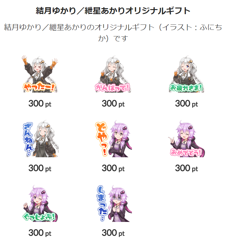 私が描いたあかりとゆかりのギフトは引き続き使えます! ガンガン使ってくれると嬉しいです!