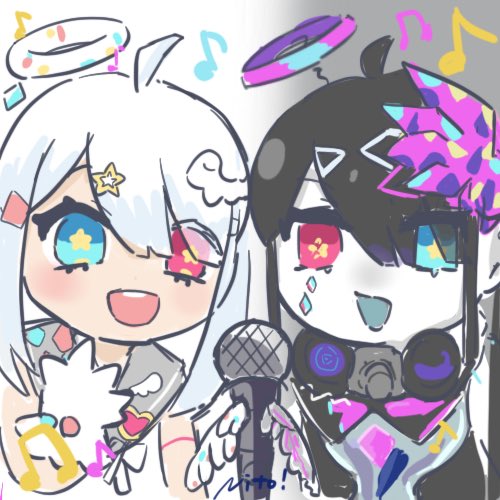 体が2つ…?心はひとつ!!!☝️ お歌素敵〜🎶な、ゆる絵どうぞ〜 参加ありがとうございました〜 #ツナギャラリー twitter.com/tunagi_yuzuha/…