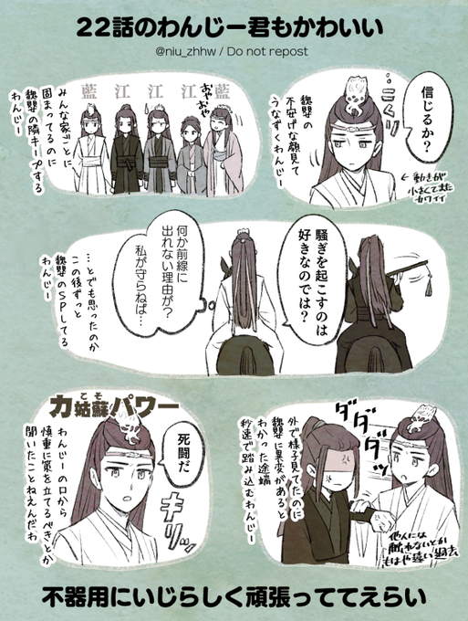 厳密には話数あってないけど、思追は忘羨の曲も聞き覚えがあると言っていたから、28話で魏嬰が乱葬崗で清心音吹いたりしてたのも覚えてたらいいなっていう #CQL吹替版話数ワンドロワンライ