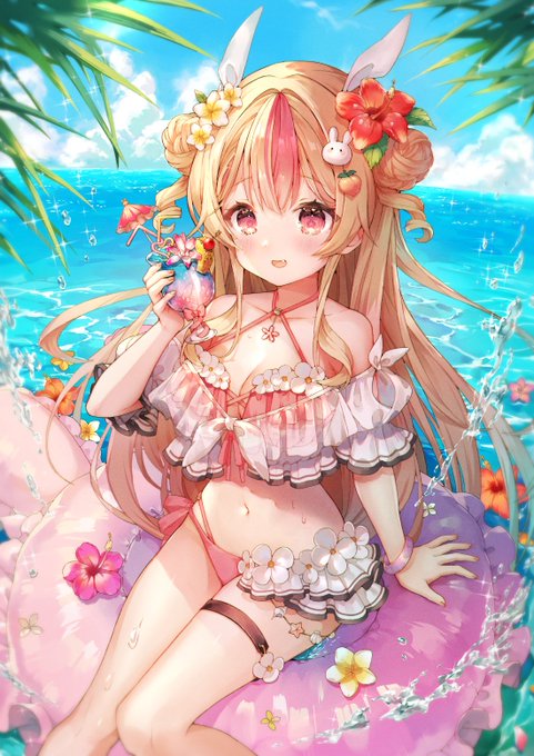63 490 桃川うさぴさま( @momokawausapi )のグッズ用イラストを描き下ろしさせていただきました、よろしくお願いいたします🏖️ 23/06/30 20:45