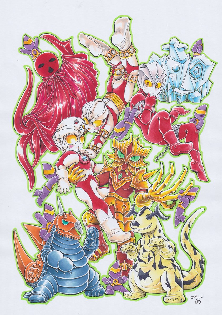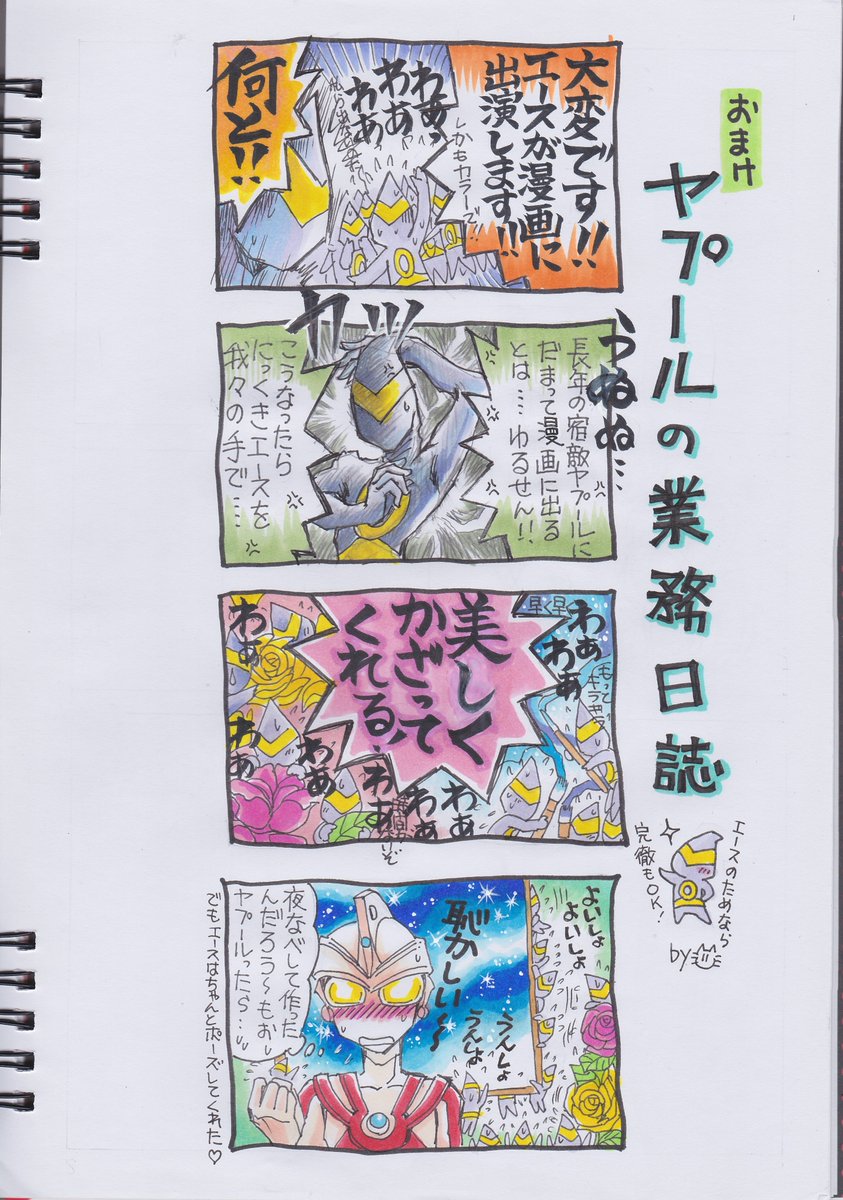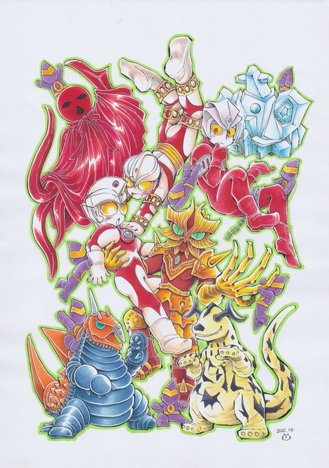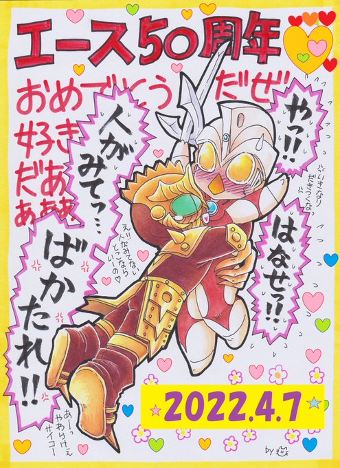 #ウルトラマンA50周年 エース50周年お祝いイラストその3です! いつものわちゃわちゃです…エースキラーです! カッコいいのはゴルゴダ記念日にね(*'▽') ホントにウルトラマンAという作品が大好き~!