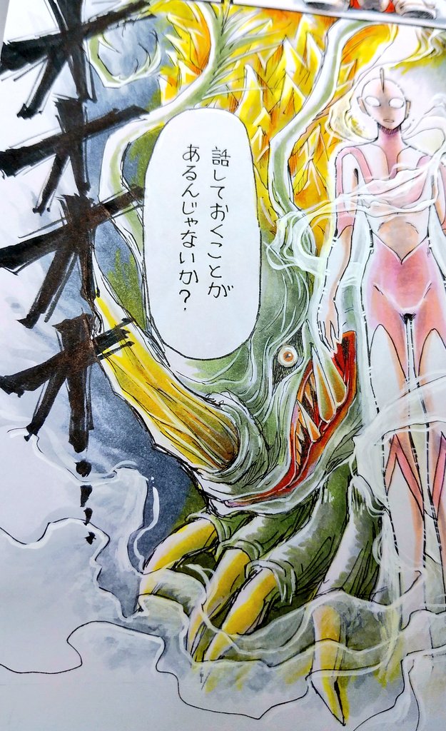 #シン・ウルトラマン 明日2回目見に行きます😆❤ こちらは去年、延期になって悲しくて楽しみで待ちきれなくて描いた漫画です😊ガボラの無機質な顔が好きで、それを表現したくてめちゃくちゃがんばって描きました😅ガボラ出ると応援しちゃいます😊 米津玄師さんのM八七も好き😊 あ~楽しみだ😆❤