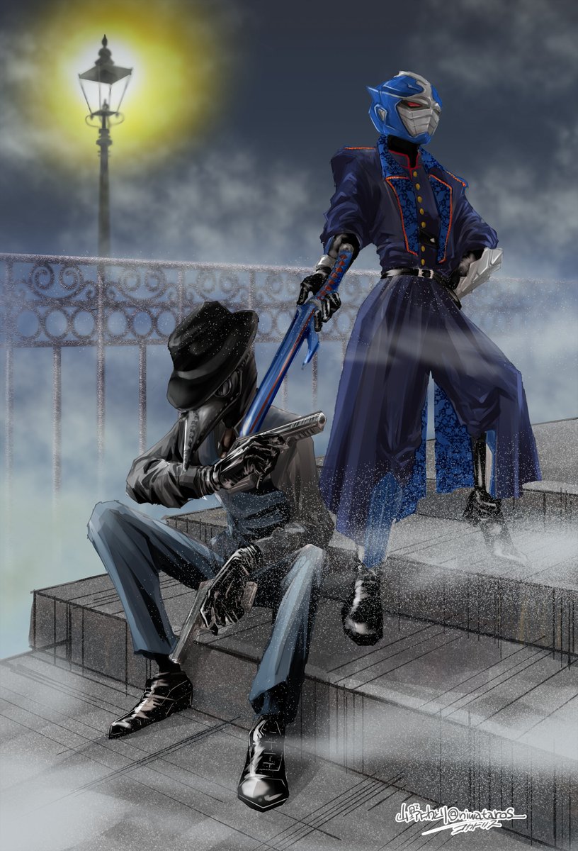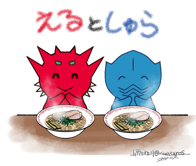 煮付さん初めて描いてみました。 そしてやっぱり元締と並べたくなる……不穏にしかならないw #NitsukeArt #修羅王丸