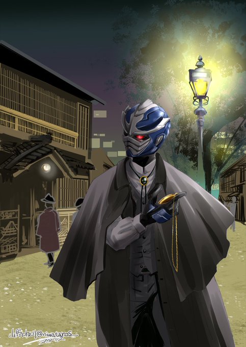 そしてこちらはなんと元締の新たな式神、陸奥怪童くん❗オーパーツの複製だとか……人の魂使ったとか不穏なことを聞いた気も。モノアイが素敵✨そして右肩の装甲に元締由来の証が。 #納涼六ツ半撮影会