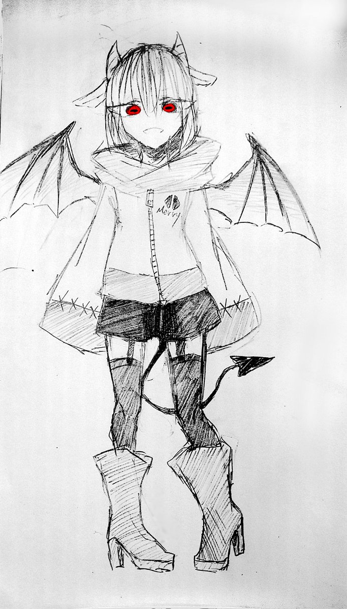 描かなきゃいけん絵は終わらんけど、rkgk捗ったんであげときますね、ハイ() ヤギモチーフの悪魔ちゃんですぞ✟ #落書き #rkgk