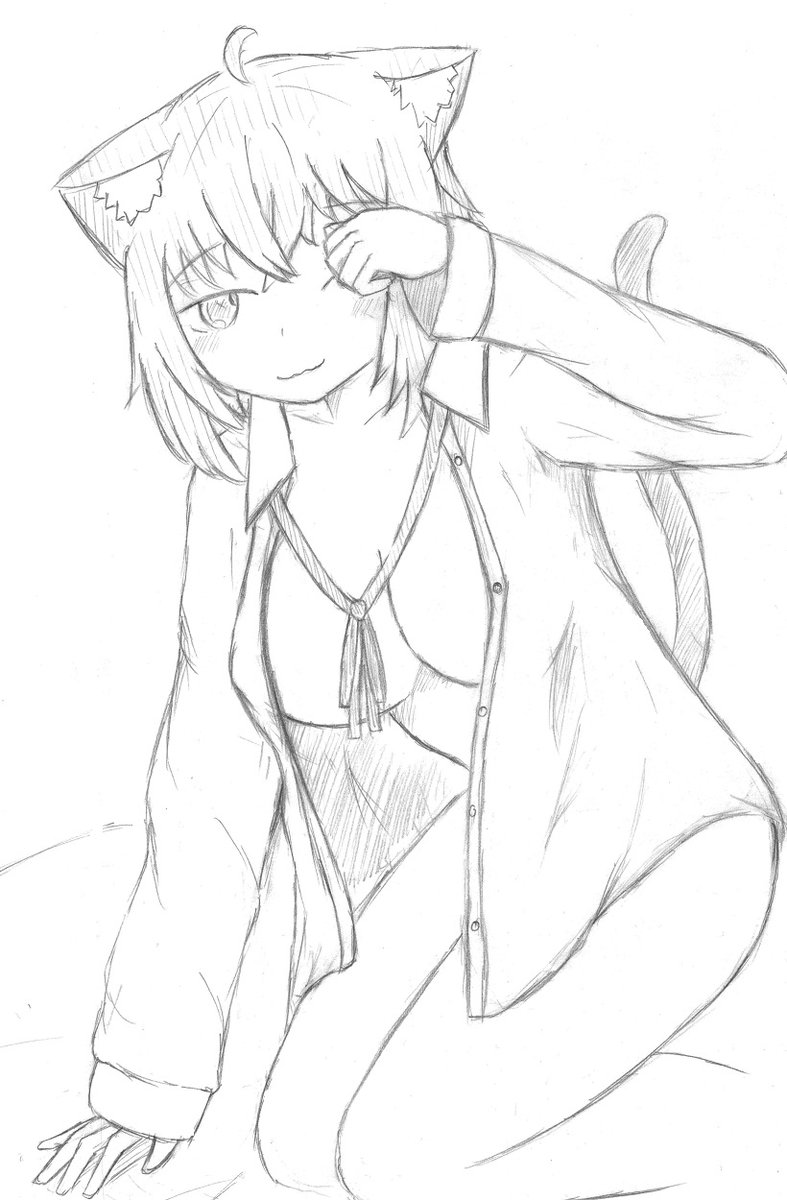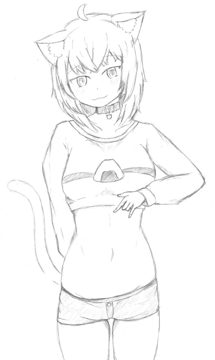 いつもより服の丈が短い気がするおかゆちゃん #絵かゆ