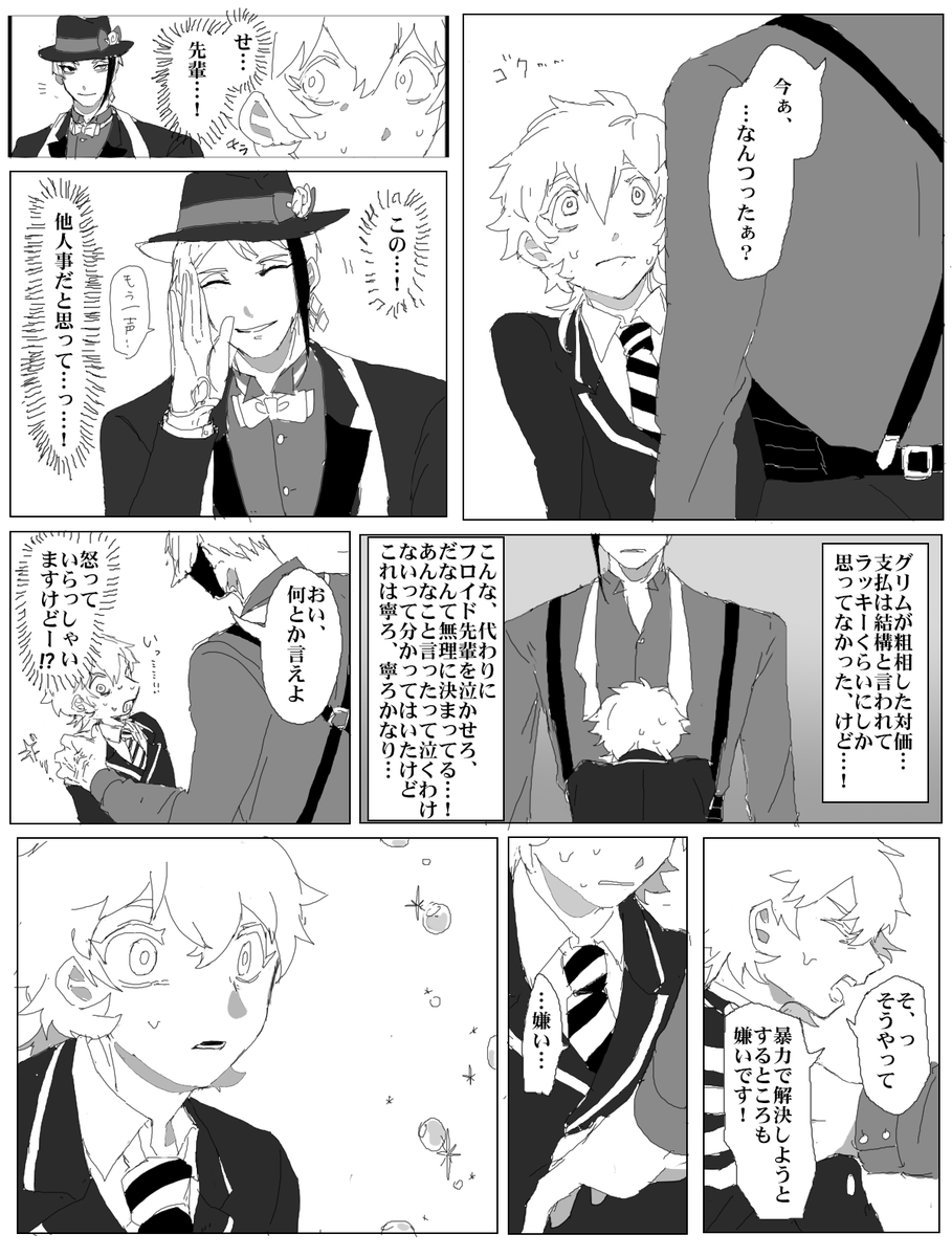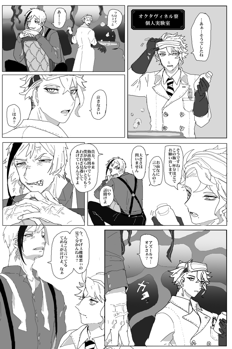ちゃがまさんとの合同紙にて小説を元に漫画を描かせて頂きました! 以下お話のサンプルです。どこかのwebイベントで通販予定しています! フロ監♀※顔有監督生 『誰にでも愛想振り撒く監督生に堪忍袋の緒がキレるフロイドの話』 (4/16)