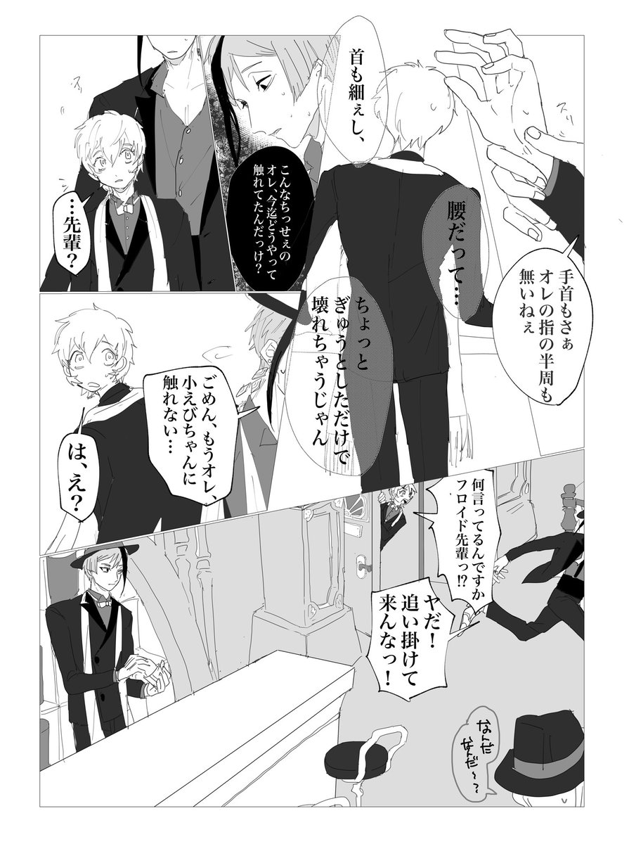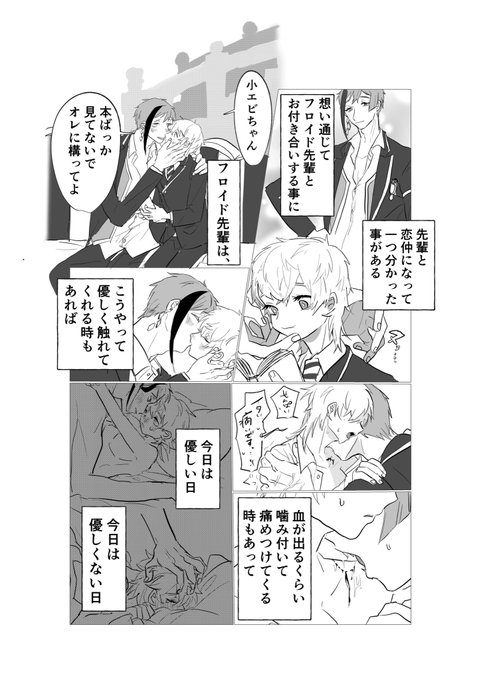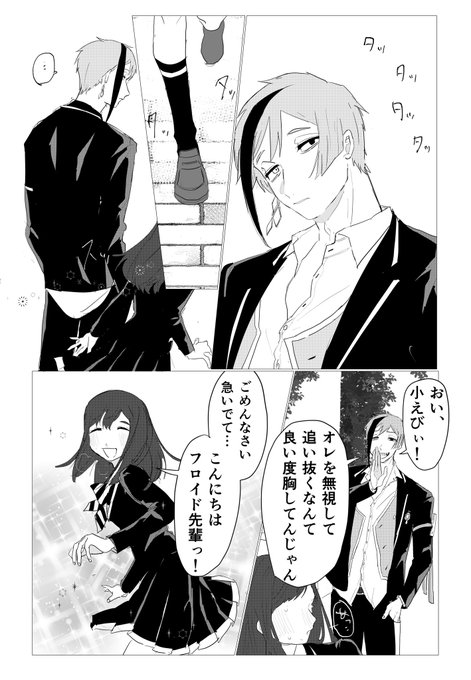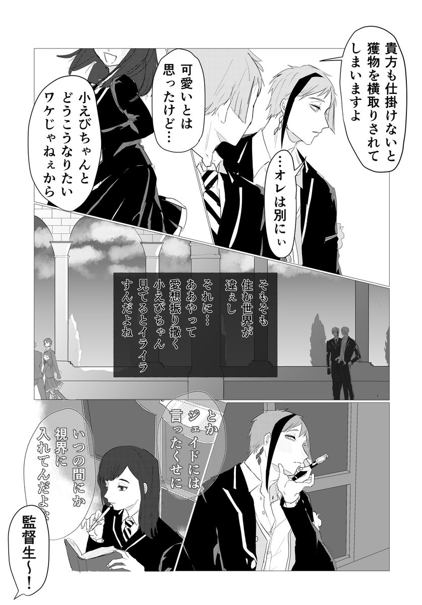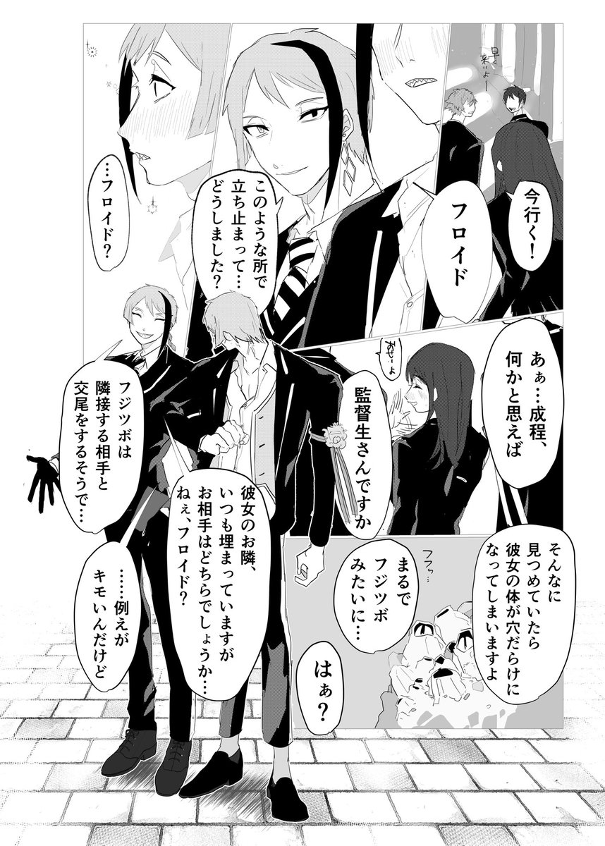 46 695 ちゃがまさんとの合同紙にて小説を元に漫画を描かせて頂きました! 以下お話のサンプルです。どこかのwebイベントで通販予定しています! フロ監♀※顔有監督生 『誰にでも愛想振り撒く監督生に堪忍袋の緒がキレるフロイドの話』 (4/16) 22/02/14 00:14