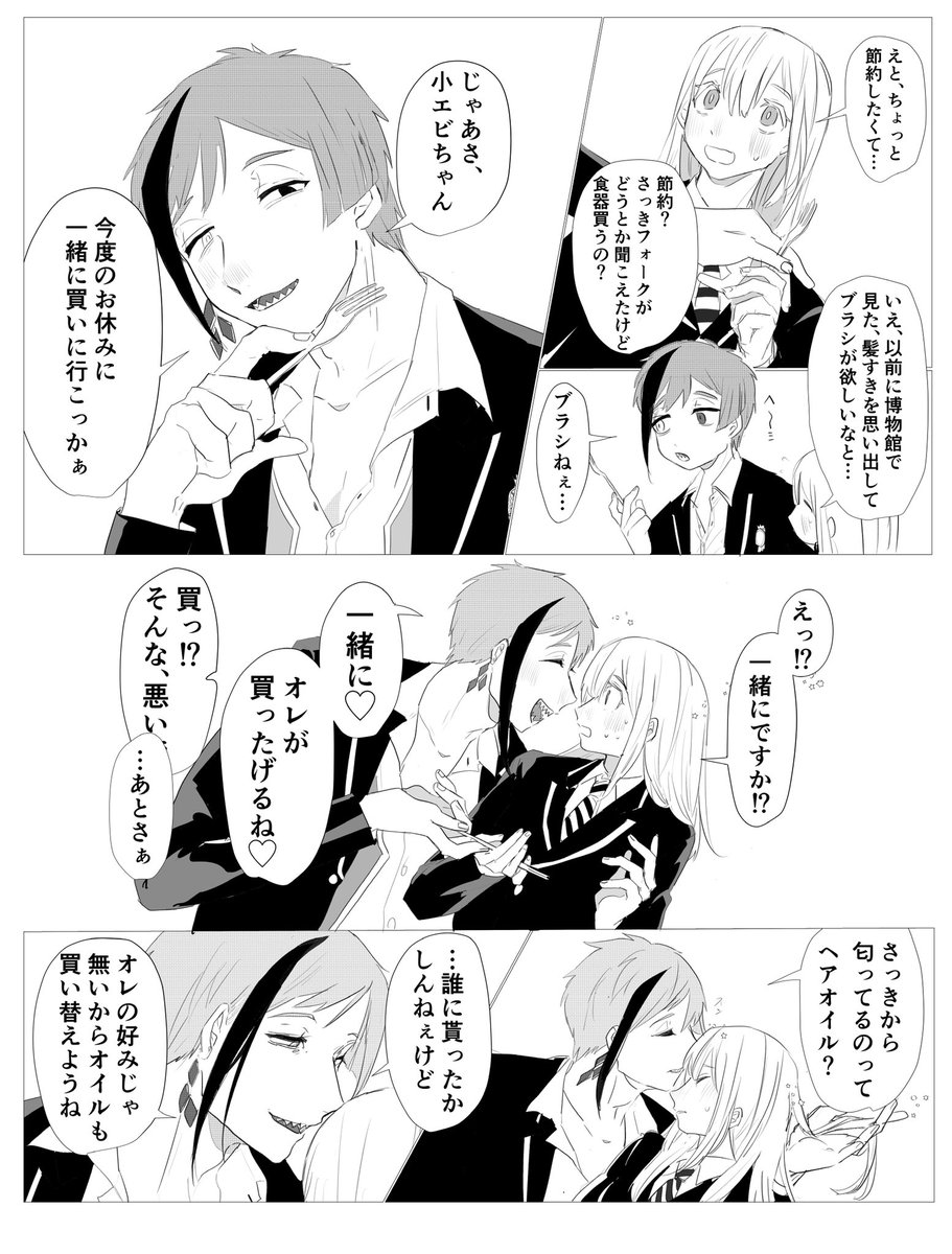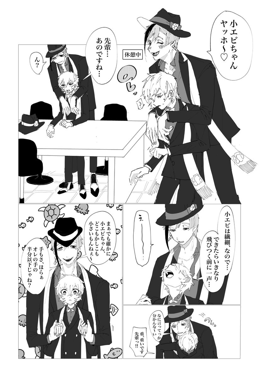 192 3707 イライラして周りに当たり散らかす🦈に🦐が一言、癒しグッズ等を手元に置いて握ったりすると落ち着きますよとアドバイスしたその日から急に手を握られたりギュッと抱き絞められたりする🦈🦐 無自覚フロ監 ※顔有監♀ #twstぷらす 22/06/27 00:14