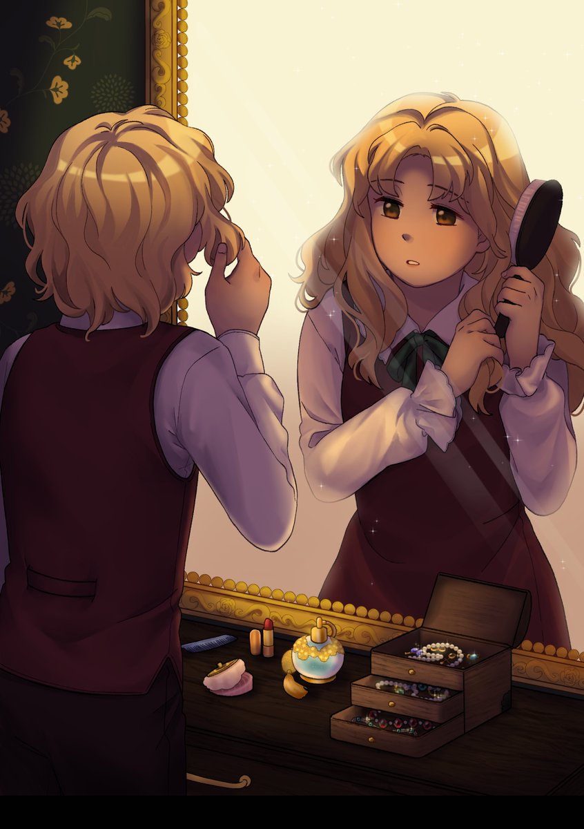 small preview of my piece for a digital touhou LGBT+ zine releasing next month! @GensoColors I drew jacketko :]