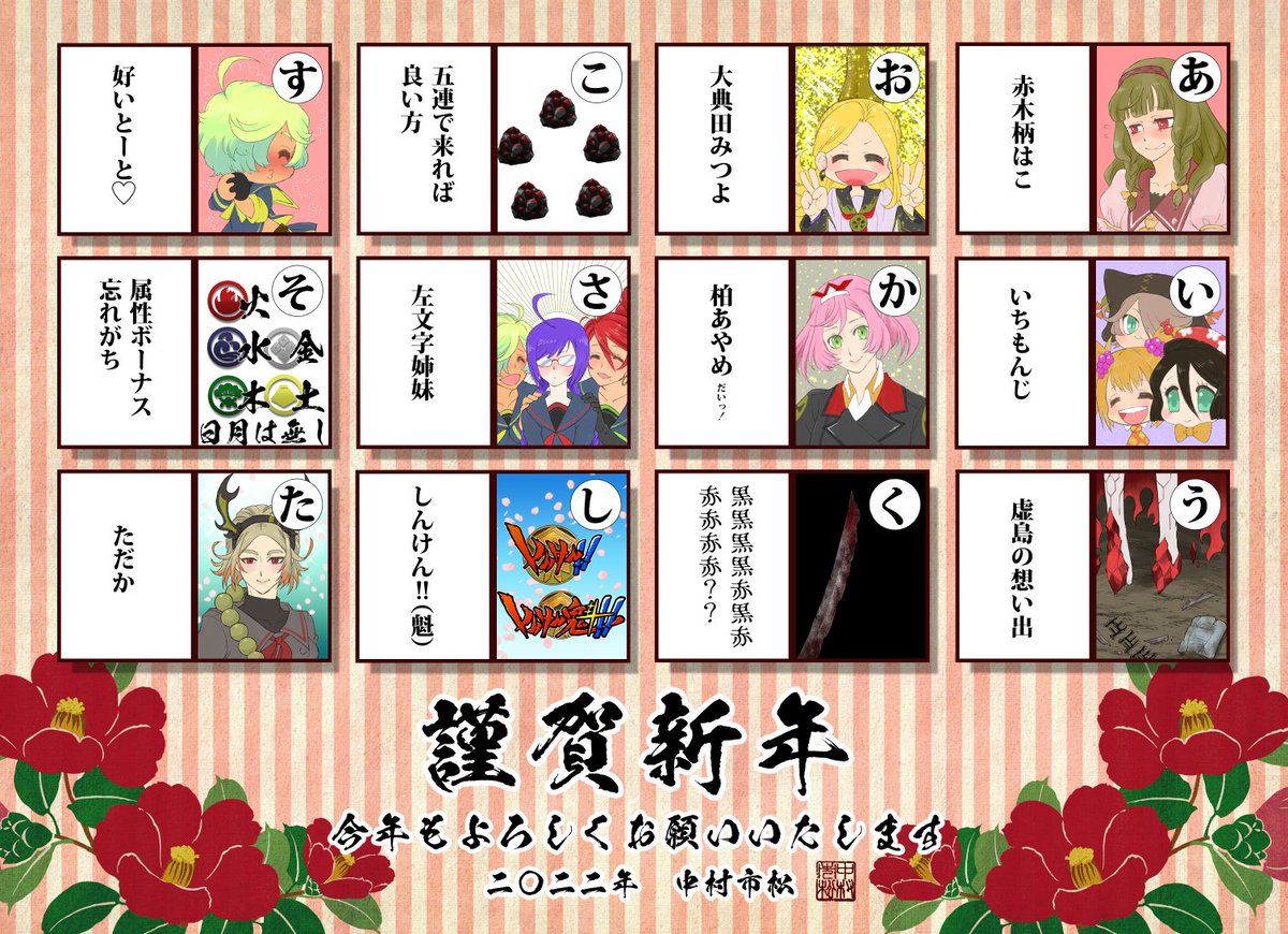 10 19 明けましておめでとうございます! 今年もよろしくお願いいたします!!(2回目) (みつよの苗字間違えたので上げなおしました申し訳ない) #しんけん魁イラスト #しんけんイラスト 22/01/03 22:56