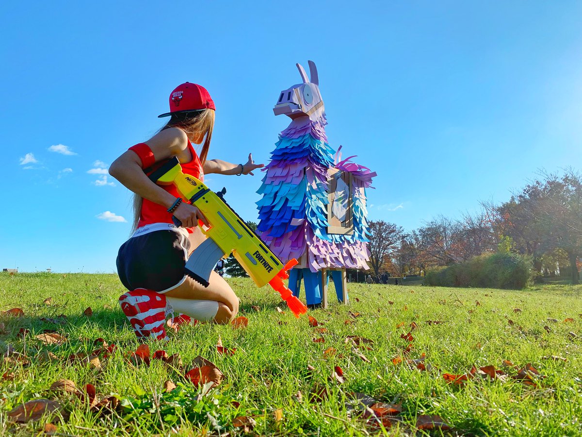 2 20 パパサンタから息子へのクリスマスピニャータ完成!! ぶっ壊す前に記念撮影📸笑 1/1 スケールです👍 デカすぎてクリスマスまで隠しておくのが大変😂 #Fortnite #フォートナイト #ラマ #コスプレ 19/12/08 18:42