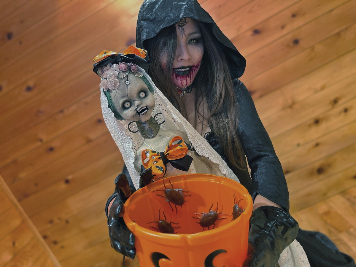 アンジー「トリックオアトリート!」 カサンドラ「生きたまま食べると、甘みが出て美味しくなるのよね」 アンジー「•••••。」 #バイオハロウィン #コスプレ #REBHFun