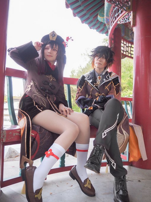 ⚠コスプレ⚠ 原神 〚往生堂〛 鍾離🔶@sabababa_ksnm 胡桃🔺麻 撮影📷ゆにちゃん ( @yuni__dadada )