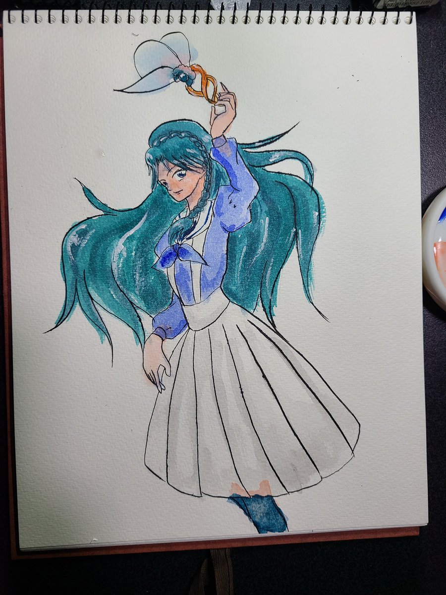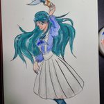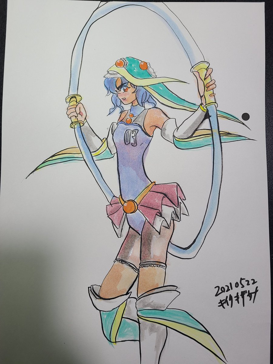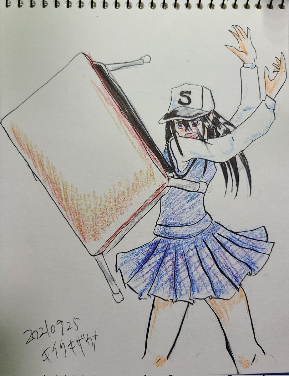 #チャンピオン版深夜の真剣お絵描き60分一本勝負 お題:第288回テーマ「8/6新刊発売作品」 「夢見が丘ワンダーランド」の山吹紅愛ちゃん。 アナログなので構図が片寄ってても修正できないから、ほっとくと余白がエライことになる。