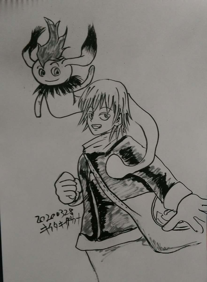 #チャンピオン版深夜の真剣お絵描き60分一本勝負 お題:第228回テーマ「6/8新刊発売作品」 「バクくん」1巻発売記念! 1巻発売の時くらい主人公描くもんじゃない? でも、ケンちゃんと花ちゃん描いちゃう。