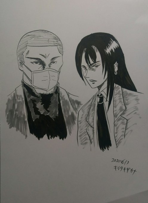 #チャンピオン版深夜の真剣お絵描き60分一本勝負 お題:第272回テーマ「被り物」 箱女藍澤さん21巻バージョンなので、髪の長さ服の色はこれのハズ。 「実は私は」読み返したらやっぱし面白かった。