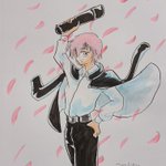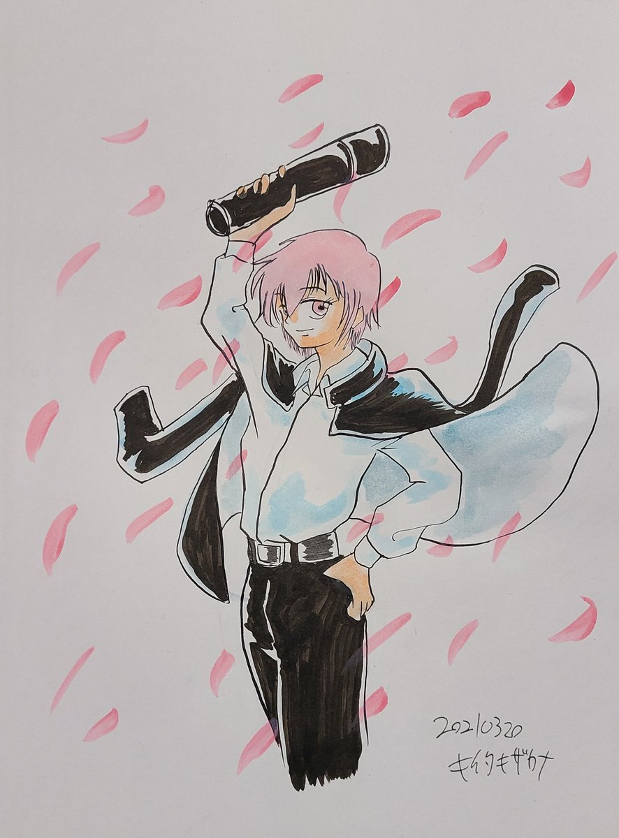 #チャンピオン版深夜の真剣お絵描き60分一本勝負 開催日:3/20(土)22:00〜23:00(遅刻もOK) お題:第268回テーマ「桜」 バクくん三年生だもんなあ‥‥。という感じで、バクくんの卒業式。