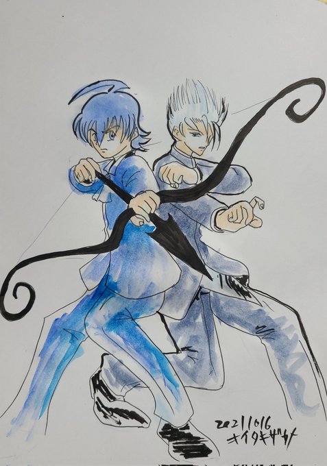 #チャンピオン版深夜の真剣お絵描き60分一本勝負 お題:第217回テーマ「偉い人」 そりゃあ、偉いと言えば王様だよなあっ!? と言うことで森田将文『王様日記』のミナトとシバ。 タンコーボン今でも待ってます!
