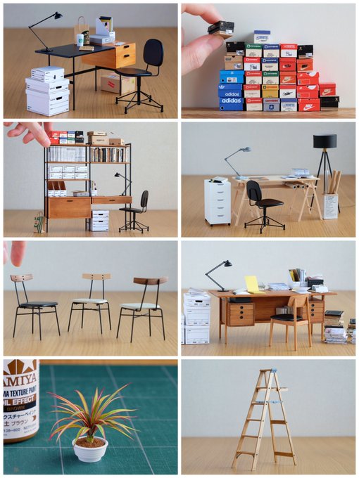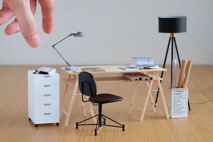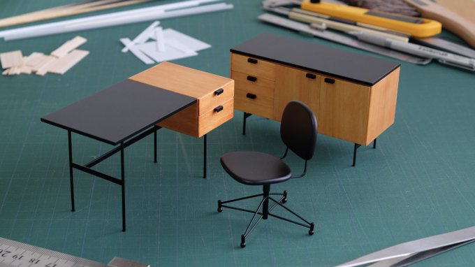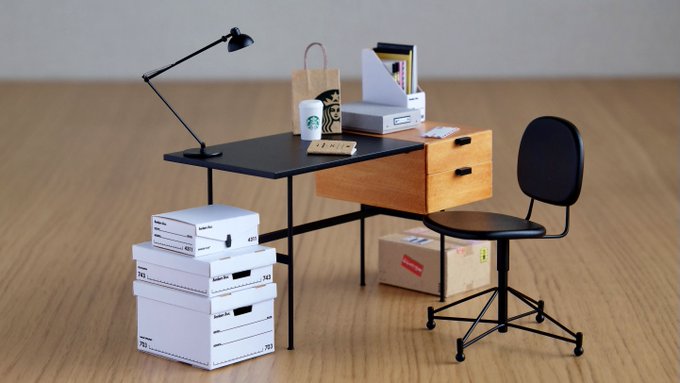 最近ミニチュア制作出来てなかったけど、再開します。 また、5月中に何かしらの家具セットを販売出来るように頑張ります。 写真は今までのデスクシリーズ。 #ミニチュア #miniatures #ミニチュア家具