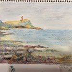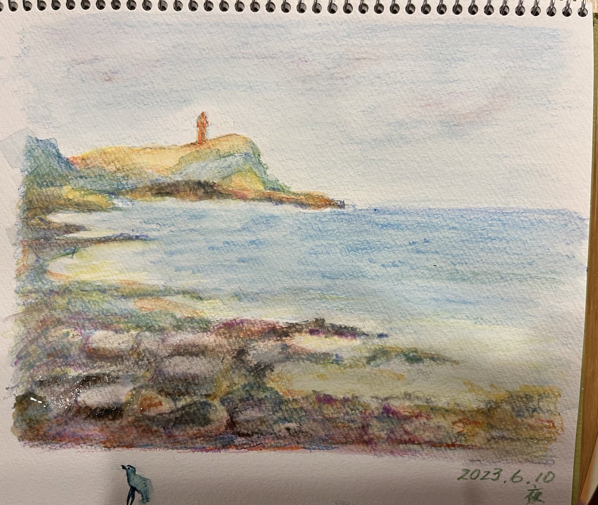 原口議員のスペースを聴きながら、水彩色鉛筆で海の風景を描きました #水彩画