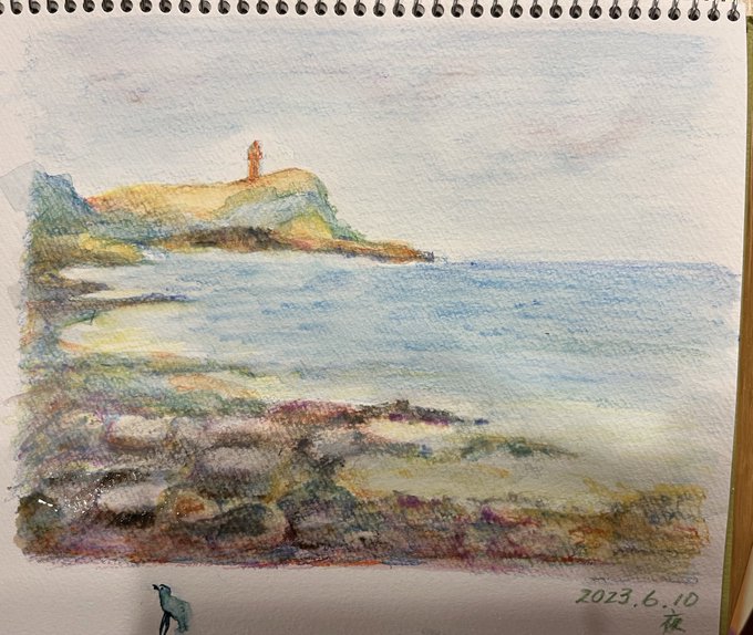 0 1 原口議員のスペースを聴きながら、水彩色鉛筆で海の風景を描きました #水彩画 23/06/10 21:15