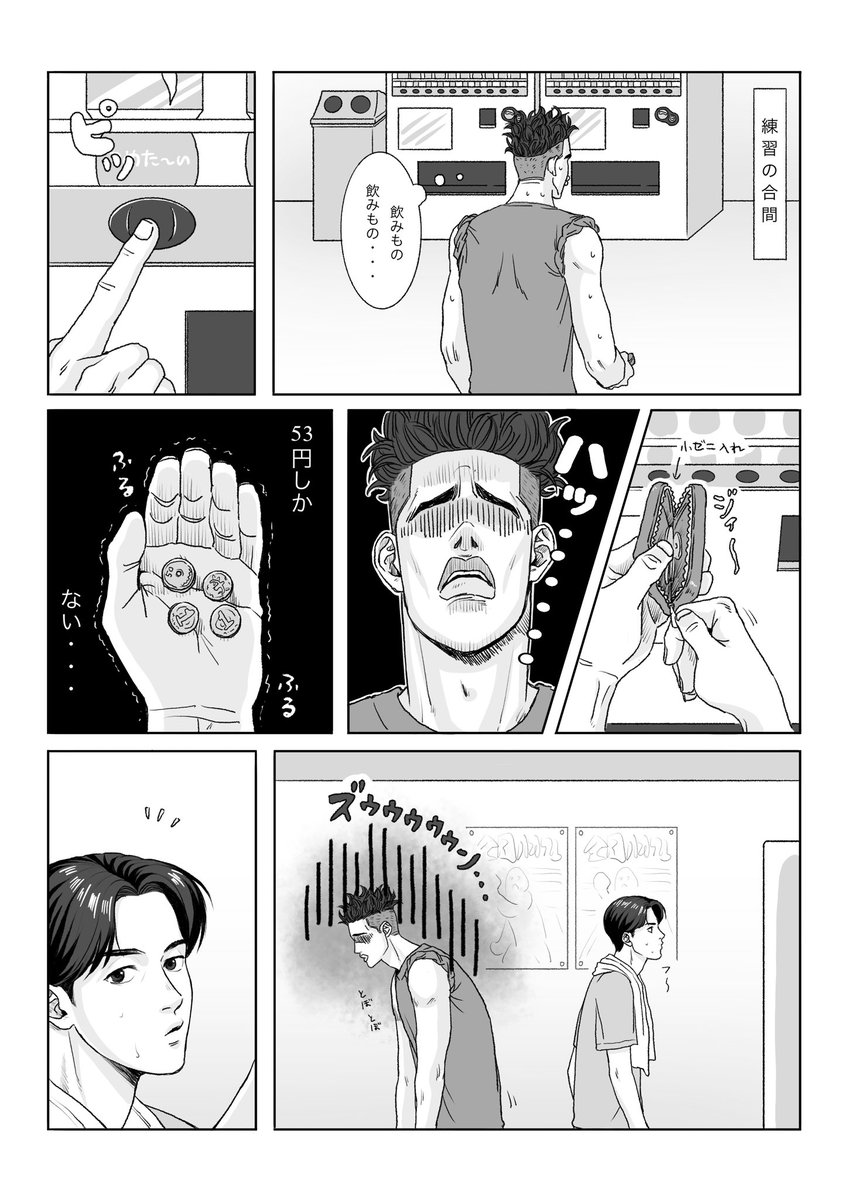 107 960 自販機のルーレットで外れた越野with福ちゃんのマンガです 23/04/17 21:39