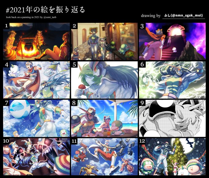 テンプレお借りしました。ありがとうございます! 大貝獣2の25周年絵が4月なのは、この時期から準備してたからです笑 9月はガッツリ原稿してたな〜 あと唐突に混ざるゼンカイジャーwww #2021年の絵を振り返る #大貝獣物語2