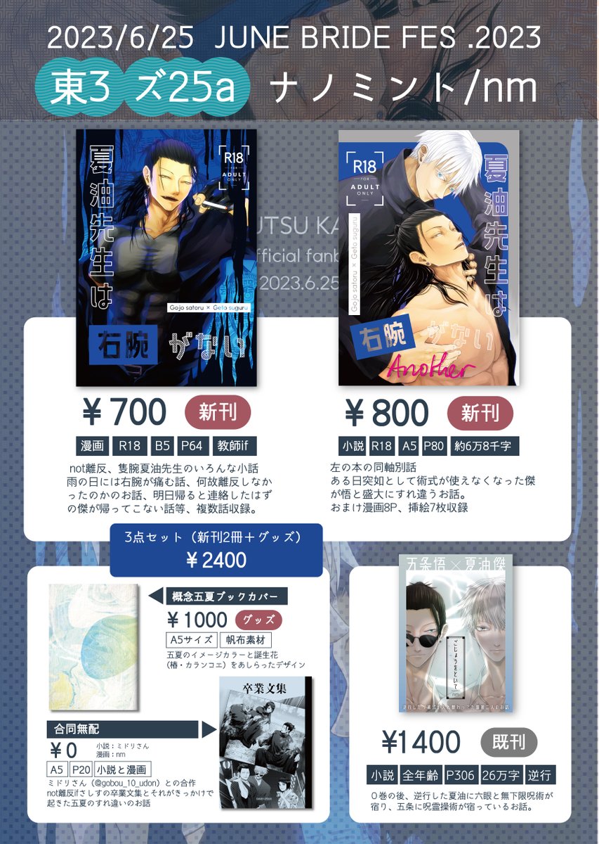 【6/25俺達最強JB2023 お品書き】 [東3 ズ 25a] ◆not離反教師if五夏の漫画と小説(新刊) ◆概念五夏のグッズ サンプル→pixiv.net/artworks/10912… 通販→ec.toranoana.jp/joshi_r/ec/app… ※当日は年齢確認のご協力をお願いいたします。