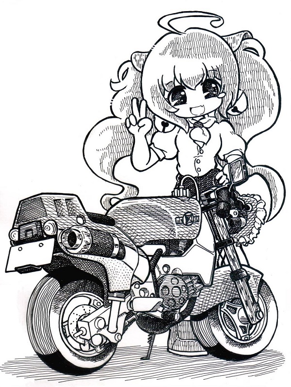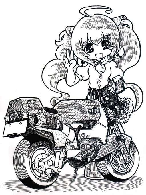 #最近フォローした方は知らない過去絵を晒す 壁|ω・) コレは最近出して無かった気がする、1枚絵で躍動感とか表現しようと真面目に取り組んでた頃の物。 影の表現が定規で引いた流線だし今となっては使わない画材(スクリーントーン)たっぷり使ってしてるし(笑)と言いますかタイヤのパターンwww