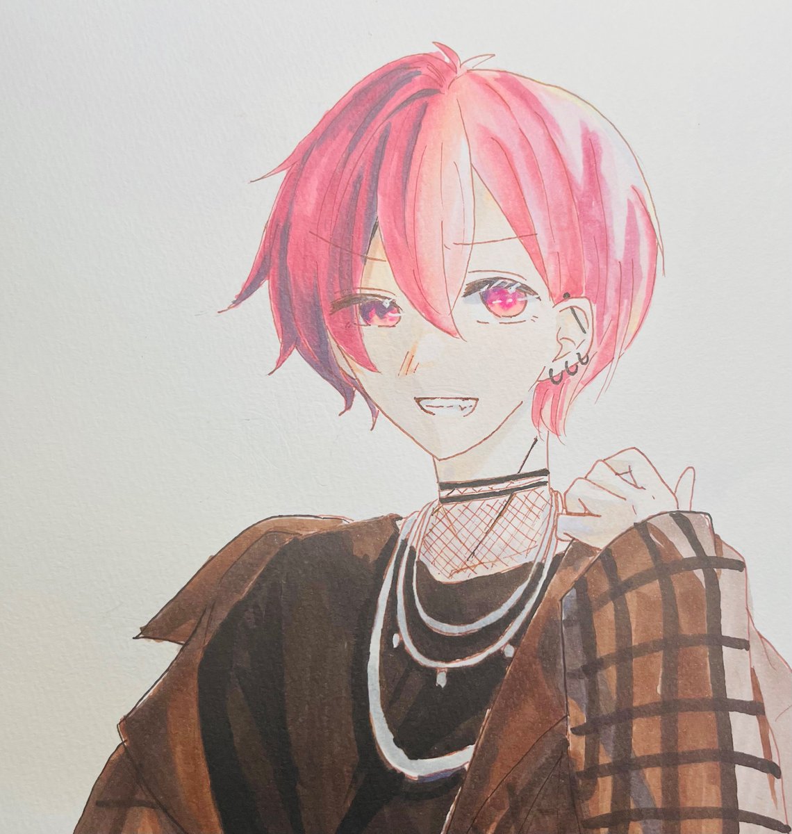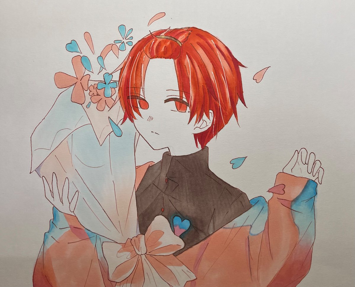 にきが投稿した後に、何故かりうらさんのハナタバのイラストを投稿する不思議な人だ、() アナログって本当に大変、疲れた、() 思い切った色使いすぎました、😇 #いれいすあーと #きいてよりうらくん