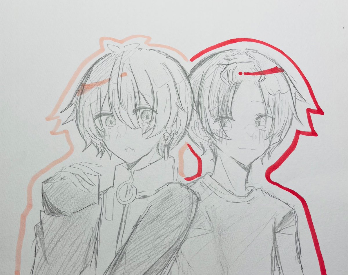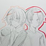 酔いどれ 💛さん 多分、なんとかなりました ( 描き直しまくって絶対やばいなって思ってたけど、思ってた以上に上手くいってビックリしてる🙄 最後だよー!!!😭 右と左で身長違うの草() #いれいすあーと #悠すけっち