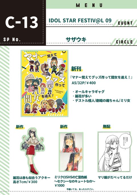 #ISF09 お品書きです~ よろしくお願いします~ 新刊サンプルはツリ~