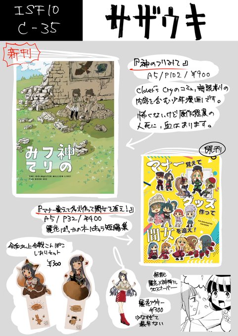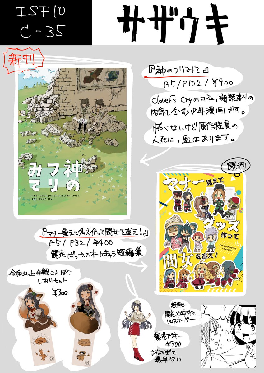 サザウキのISF10お品書き 5/28 @横浜のマリネリア 新刊の神降ろし本、既刊の間女本、あと麗花グッズもちょっと持っていきます! サンプルはツリー🌲 #ISF10