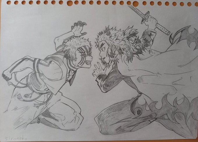 去年描いた煉獄VS猗窩座のイラスト 結構歪んでるな〜、、、 #鬼滅の刃イラスト #イラスト好きさんとつながりたい