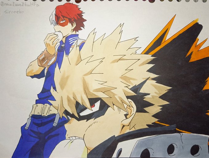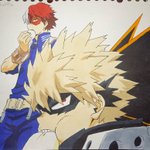 完成!!計7時間ぐらい(笑) まだまだだけど、結構上手くいったよ!よかった😭✨かっちゃんも轟くんも可愛いね🥰 #ヒロアカ #模写 #イラスト #爆豪勝己 #轟焦凍 #コピック