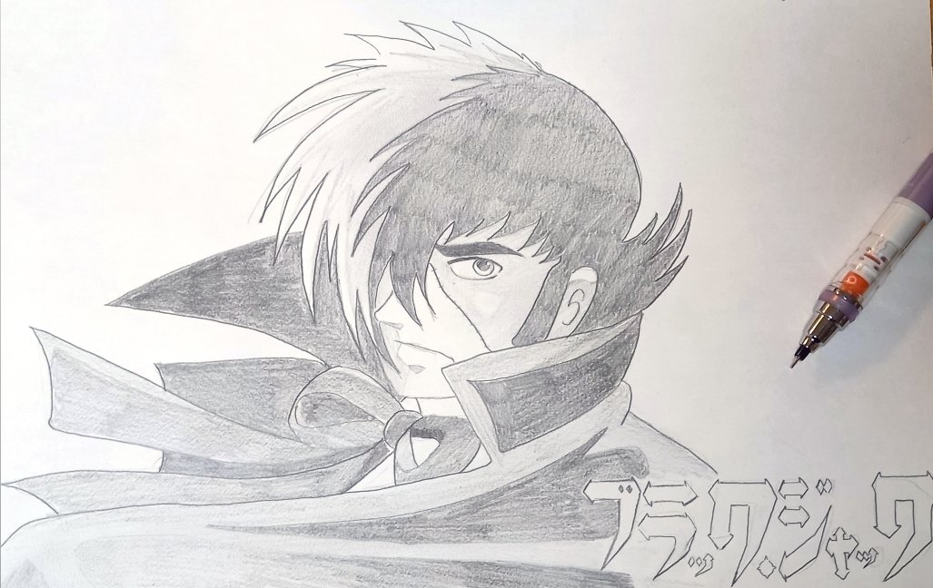 依頼されたのでブラックジャック描いて見ましたァー! 初めてだったのと黒の面積広すぎて結構失敗しちゃった😅 #ブラックジャク #模写 #イラスト