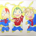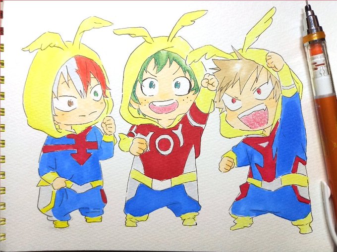 この3人組が可愛すぎて描いてみた✨ ちょっと失敗😭新しいスケッチブックに慣れないと‼️ #ヒロアカ #緑谷出久 #爆豪勝己 #轟焦凍 #オリジン組 #イラスト #模写