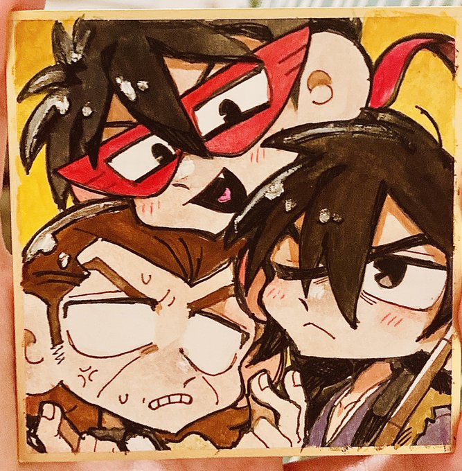 3 9 深夜に描いた梁山泊襲撃組の落書き(撮り直して再投稿) 小さい色紙に描きました 23/05/21 09:55